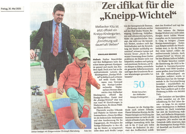 Pressebericht "Zertifikat für die Kneipp-Wichtel" - 30. Mai 2025